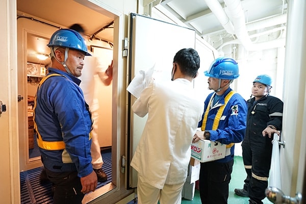 新来島豊橋造船で建造されている新造船への船用品・船食の代納もさせていただいております。
