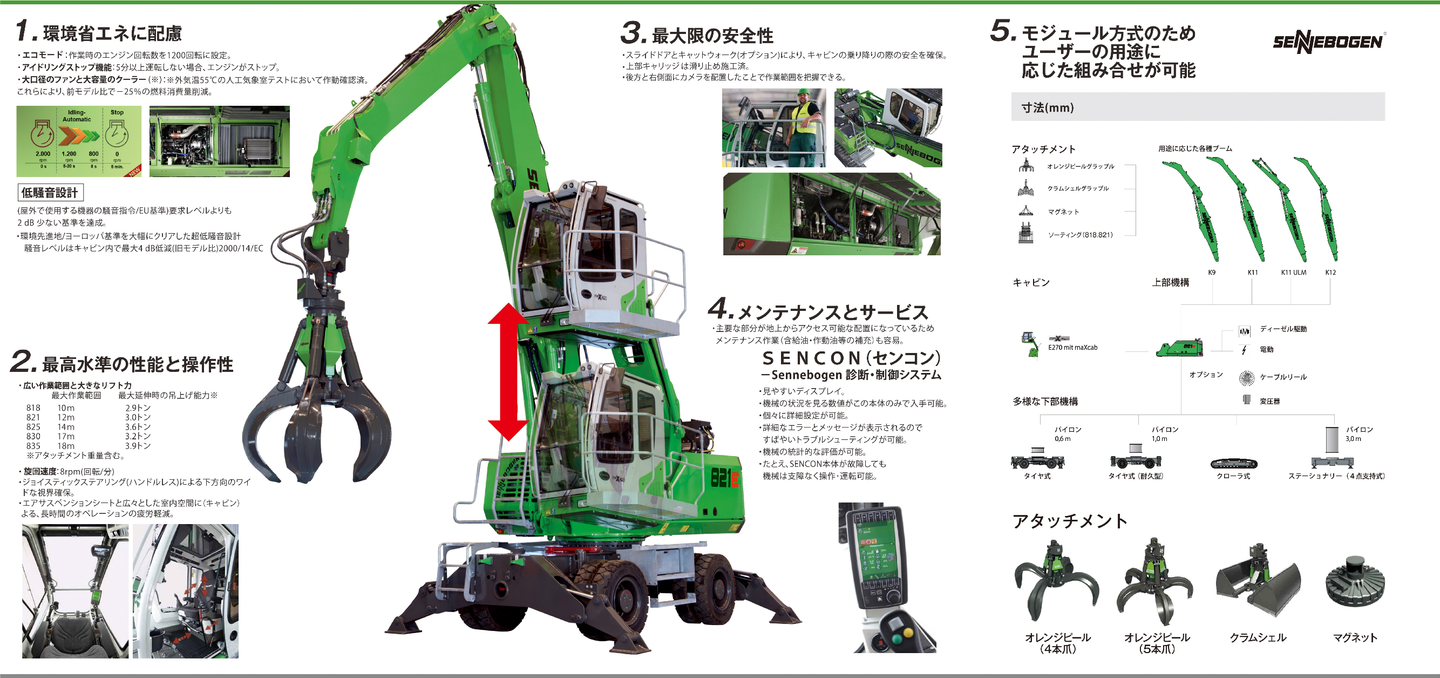 世界最高水準の持ち上げ能力を誇り、特に金属スクラップや木材、産業用廃棄物の取り扱いにおいてその真価を発揮します。これにより、効率的な作業が可能となり、オペレーターはより多くの材料を短時間で処理することができます。