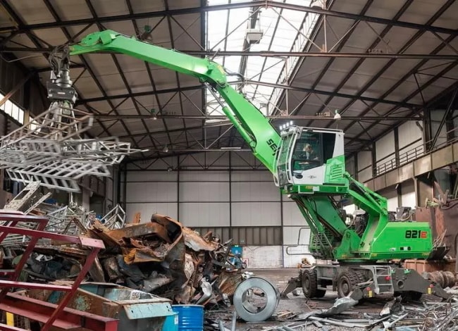 マテハン機で材料を粗破砕機へ投入